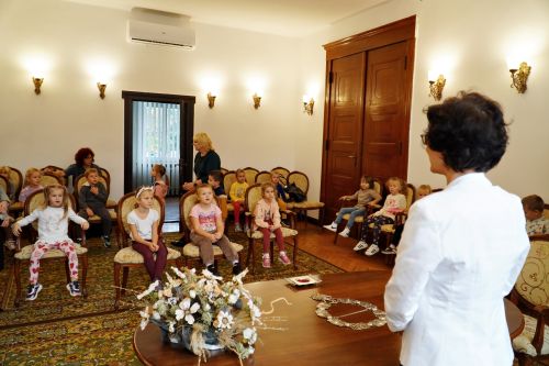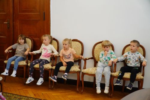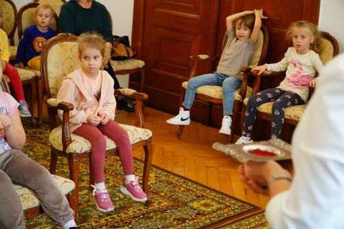 Kolejnym ciekawym etapem wycieczki była wizyta w sali ślubów Urzędu Stanu Cywilnego, przedszkolaki z uwagą wysłuchały Pani Kierownik USC opowiadającej o swojej pracy.