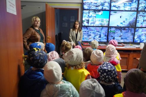 Na koniec, maluchy udały się do siedziby Straży Miejskiej, gdzie mogły dowiedzieć się na czym polega zawód strażnika miejskiego, a także czym jest miejski monitoring.