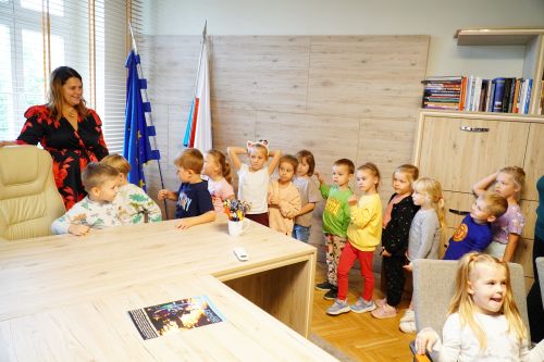 Najbardziej wyczekiwanym momentem była jednak wizyta w gabinecie Pani Burmistrz Ewy Ostrowskiej, bo któż by nie chciał, choć na chwilę, zasiąść w fotelu najważniejszej osoby w mieście.