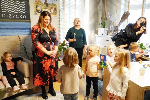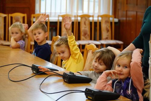 Wszystko to z powodu wyjątkowej wizyty pięciolatków w Urzędzie Miejskim w Giżycku. Przedszkolaki odwiedziły salę konferencyjną i zasiadły na krzesłach radnych miejskich, gdzie z uwagą obejrzały promocyjny spot Giżycka. Dzieci bez najmniejszego problemu nazywały giżyckie miejsca pojawiające się w filmie.