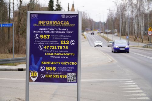 Tablice informacyjne stanęły w dziesięciu charakterystycznych lokalizacjach. Uchodźcy z Ukrainy znajdą na nich numery infolinii Wojewódzkiego Centrum Zarządzania Kryzysowego, Centrum Powiadamiania Ratunkowego, Urzędu do spraw Cudzoziemców, giżyckiej straży miejskiej oraz dane strony z informacją o legalizacji pobytu. Wszystkie dane podano zarówno w języku ukraińskim jak i polskim.